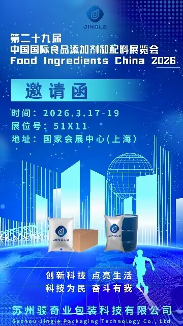 Suzhou Jingle Packaging Technology Co., Ltd. er glad for at kunne meddele sin deltagelse i den kommende Fødevareingredienser Kina 2026 udstilling. Arrangementet finder sted fra kl 17. til 19. marts 2026 ved Nationalt udstillings- og kongrescenter (Shanghai) . Besøgende er velkomne til at møde virksomhedens ekspertteam kl Stand 51X11 at udforske omfattende emballageløsninger og diskutere potentielle samarbejder.